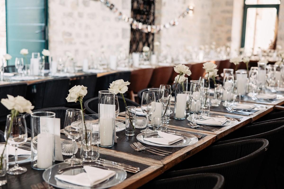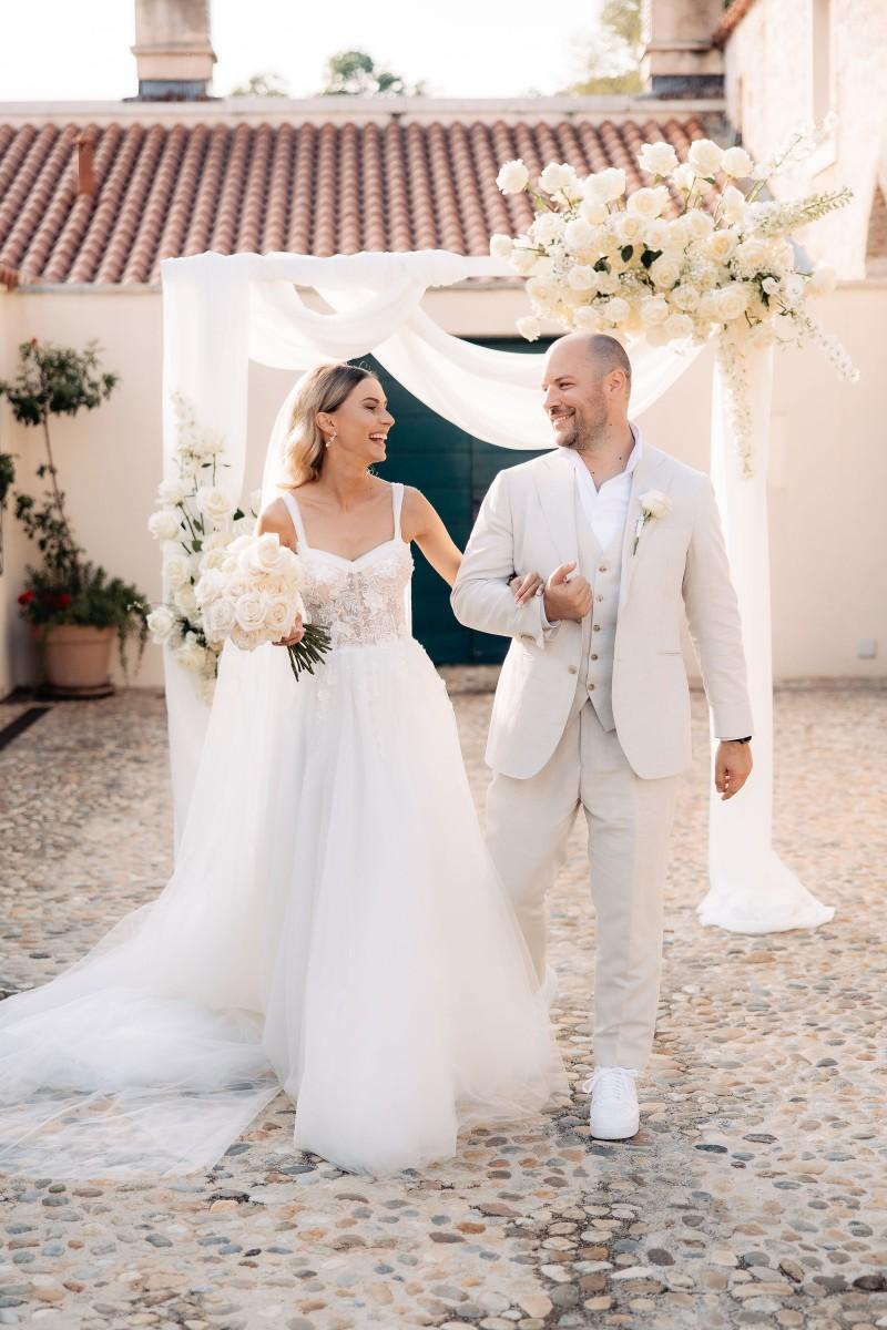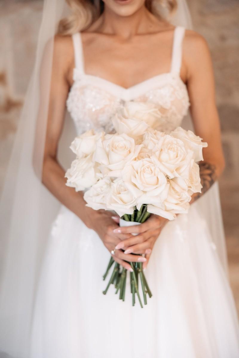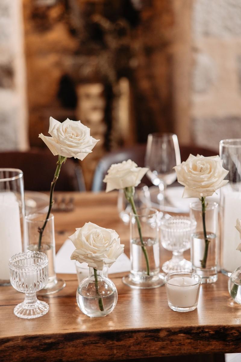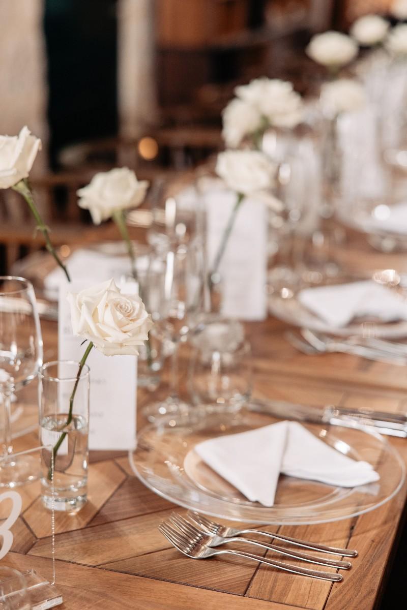 Maškovića Han provided a striking historical backdrop for this all-white celebration. Maxi and I. embraced a minimalist yet luxurious floral concept, with exclusively white blooms that brought a sense of quiet elegance to every corner of the venue. Set against the unique architecture and timeless stone walls, the floral design enhanced the serene atmosphere, creating a wedding that felt both ethereal and deeply personal.