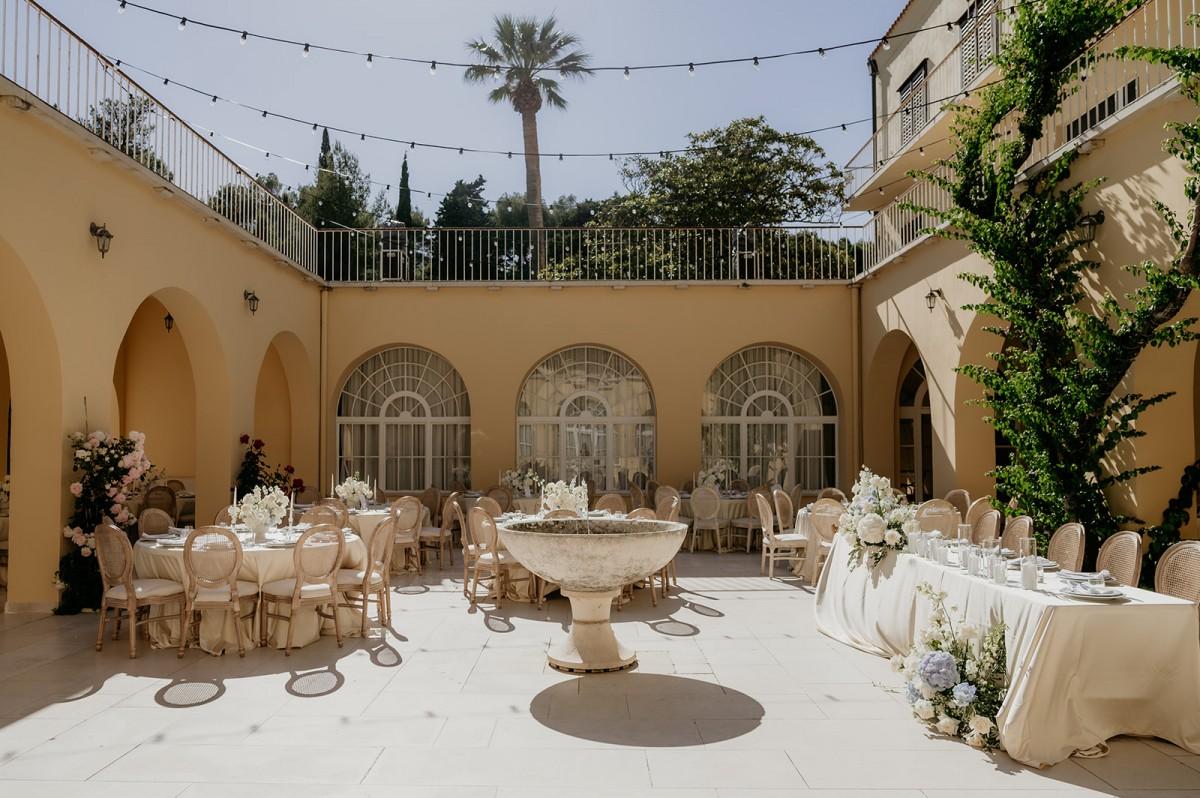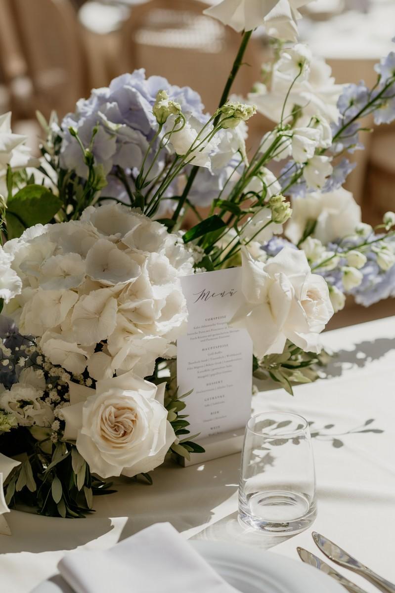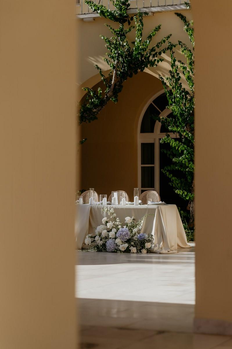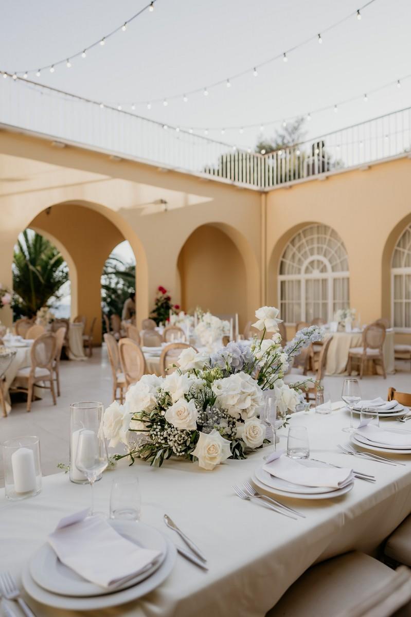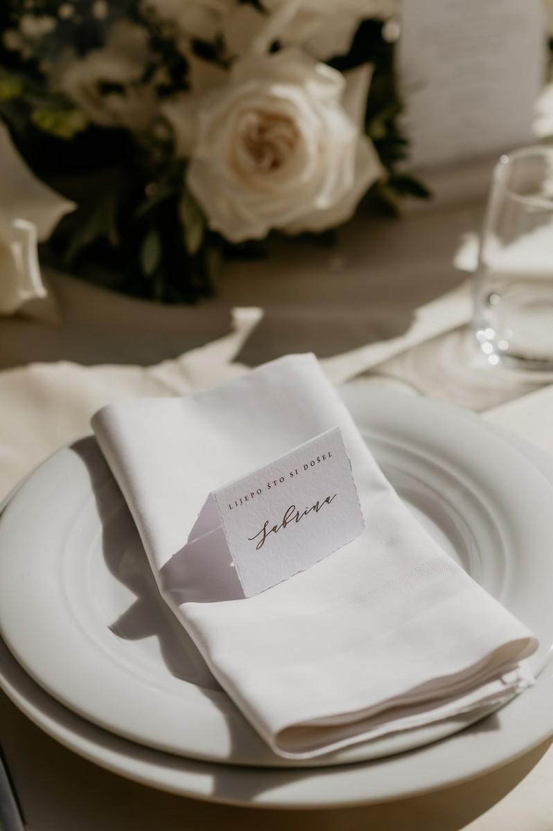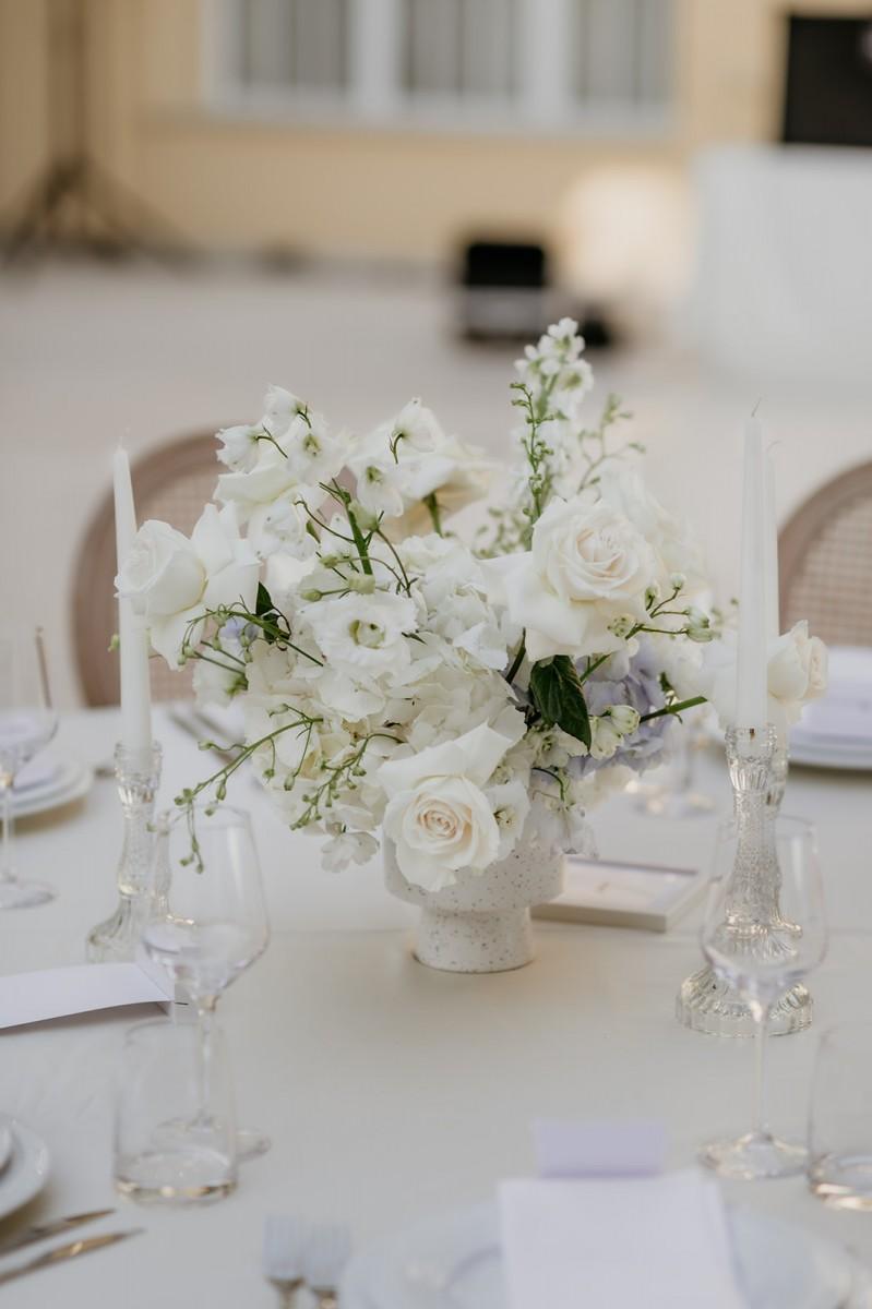In the airy Mediterranean setting of Villa Dalmacija, Ilona and Andrija celebrated their wedding with a focus on timeless elegance. White and blue florals brought a sense of freshness and contrast, complementing the villa’s stone architecture and sea views. The decor was classic with a personal twist — a perfect blend of tradition, character, and understated beauty.