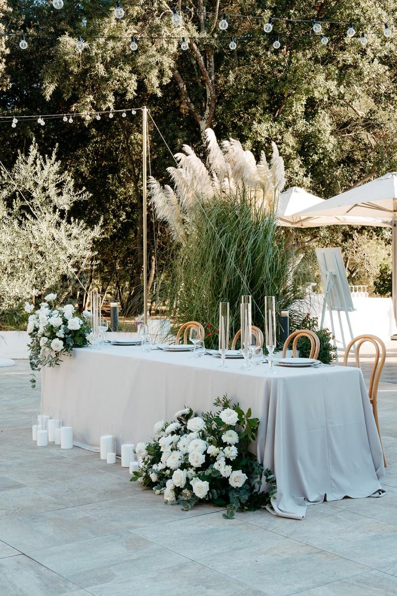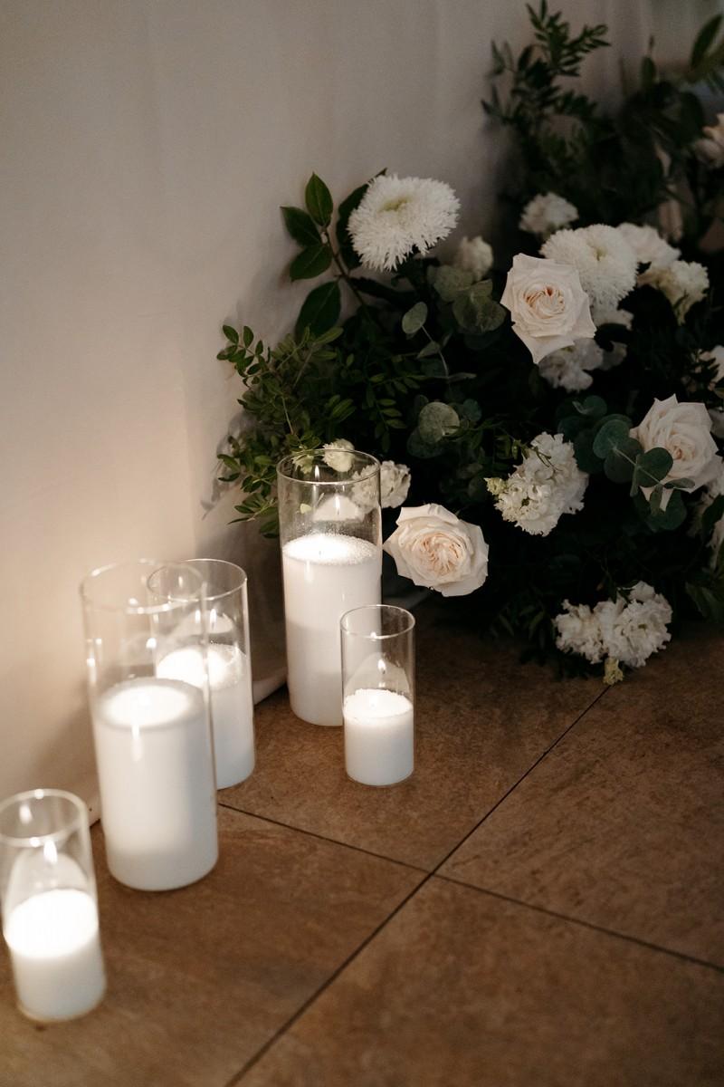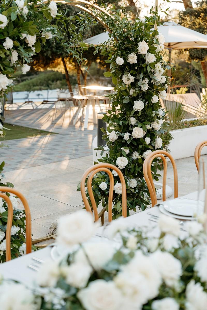 The decor followed a refined white and green palette, highlighting freshness and natural elegance. White florals combined with lush greenery enhanced the simplicity of the space while maintaining a sophisticated atmosphere. The overall concept embraced intimacy and understated luxury.