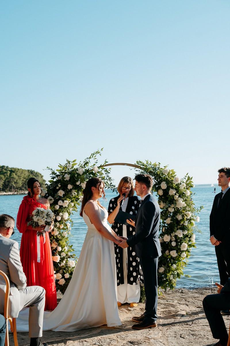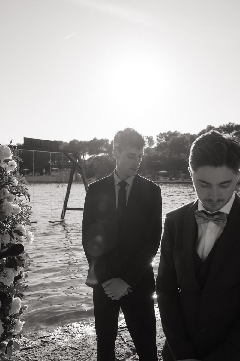 Katarina and Blaž celebrated their official wedding by the sea at Mamma Rosa, located in Crvena Luka near Biograd na Moru. Set within an authentic Dalmatian seaside setting, the celebration was intimate, elegant, and deeply personal.
