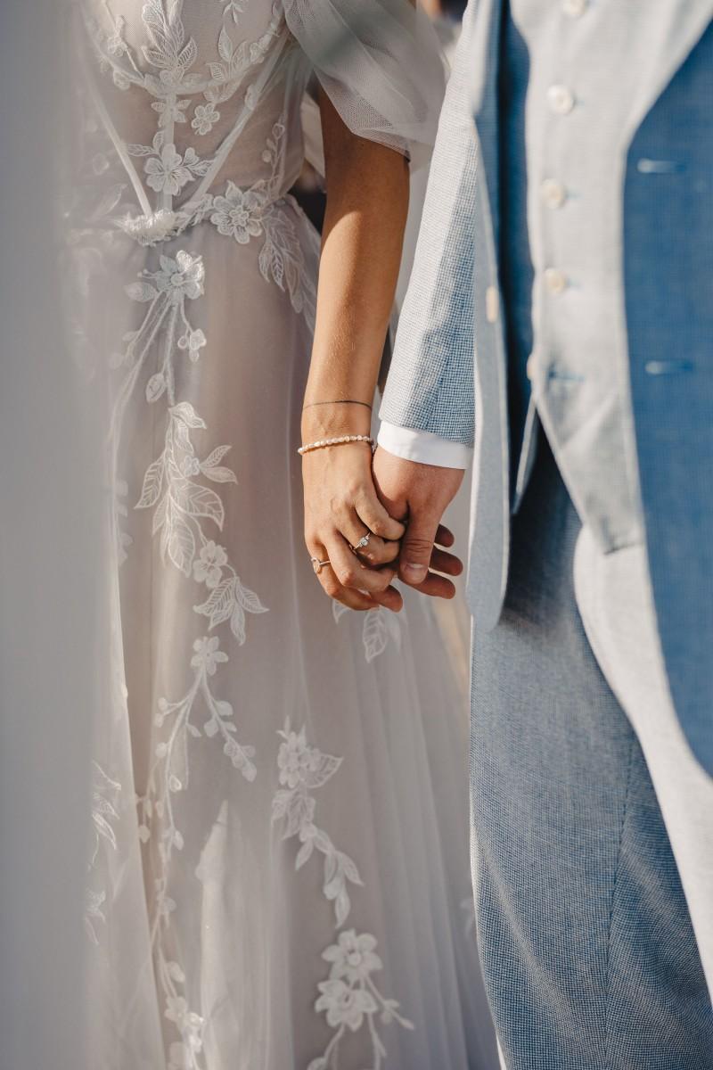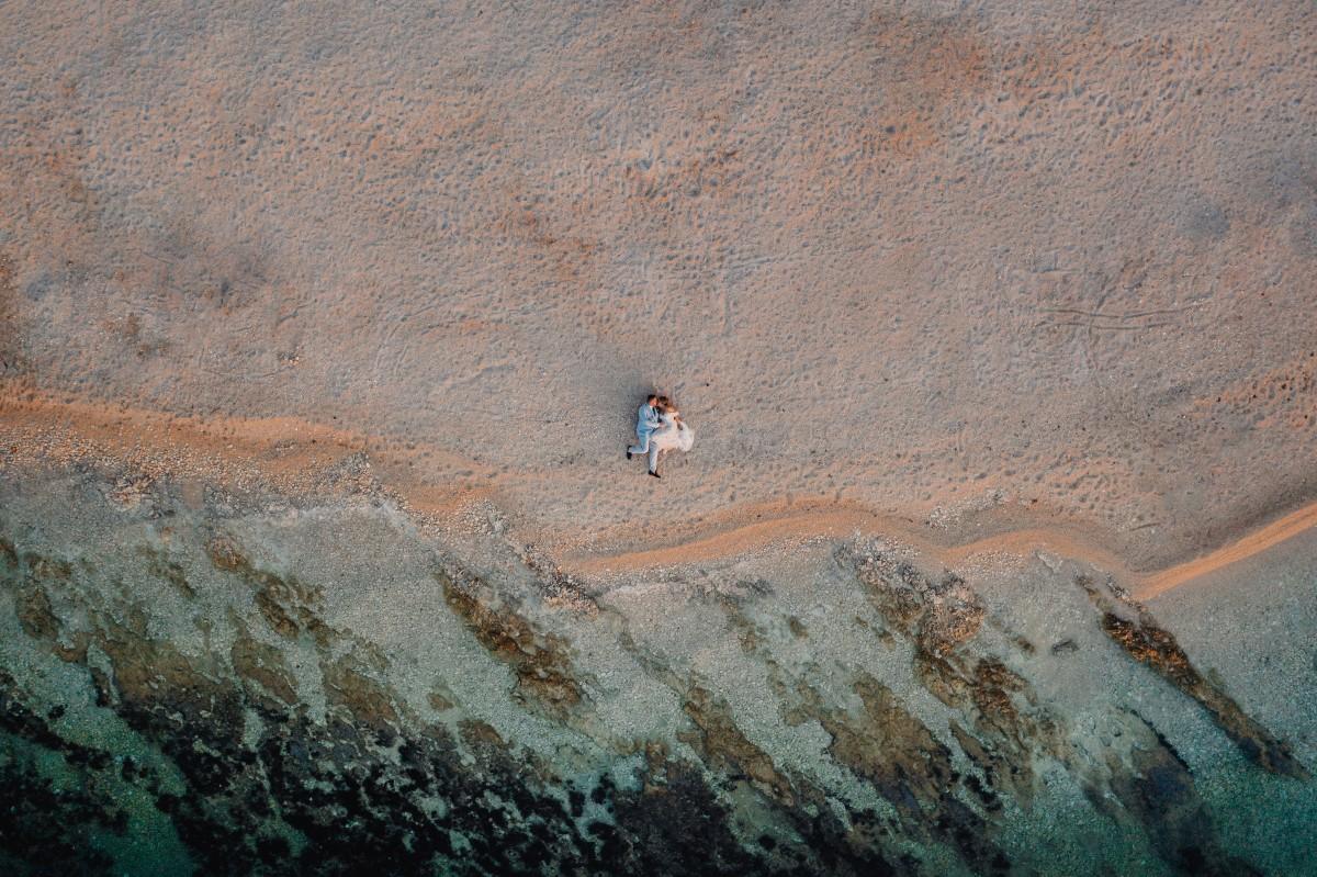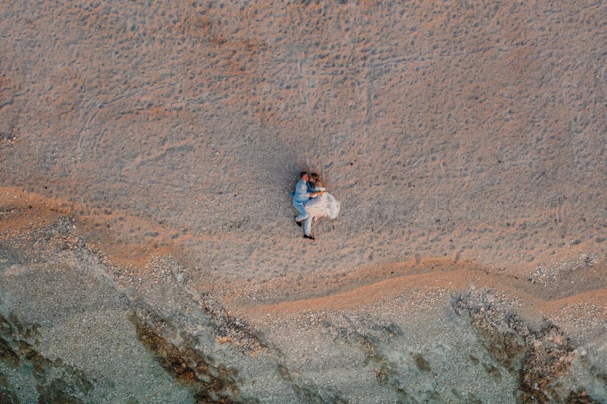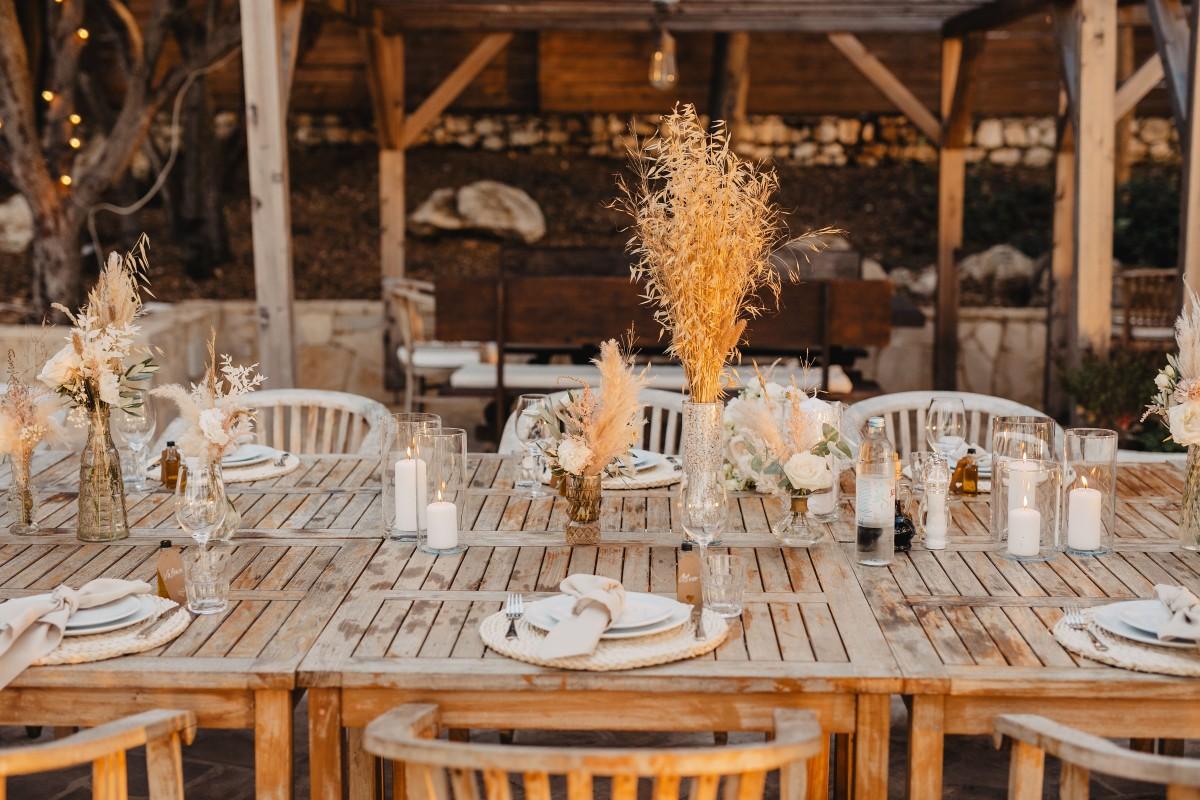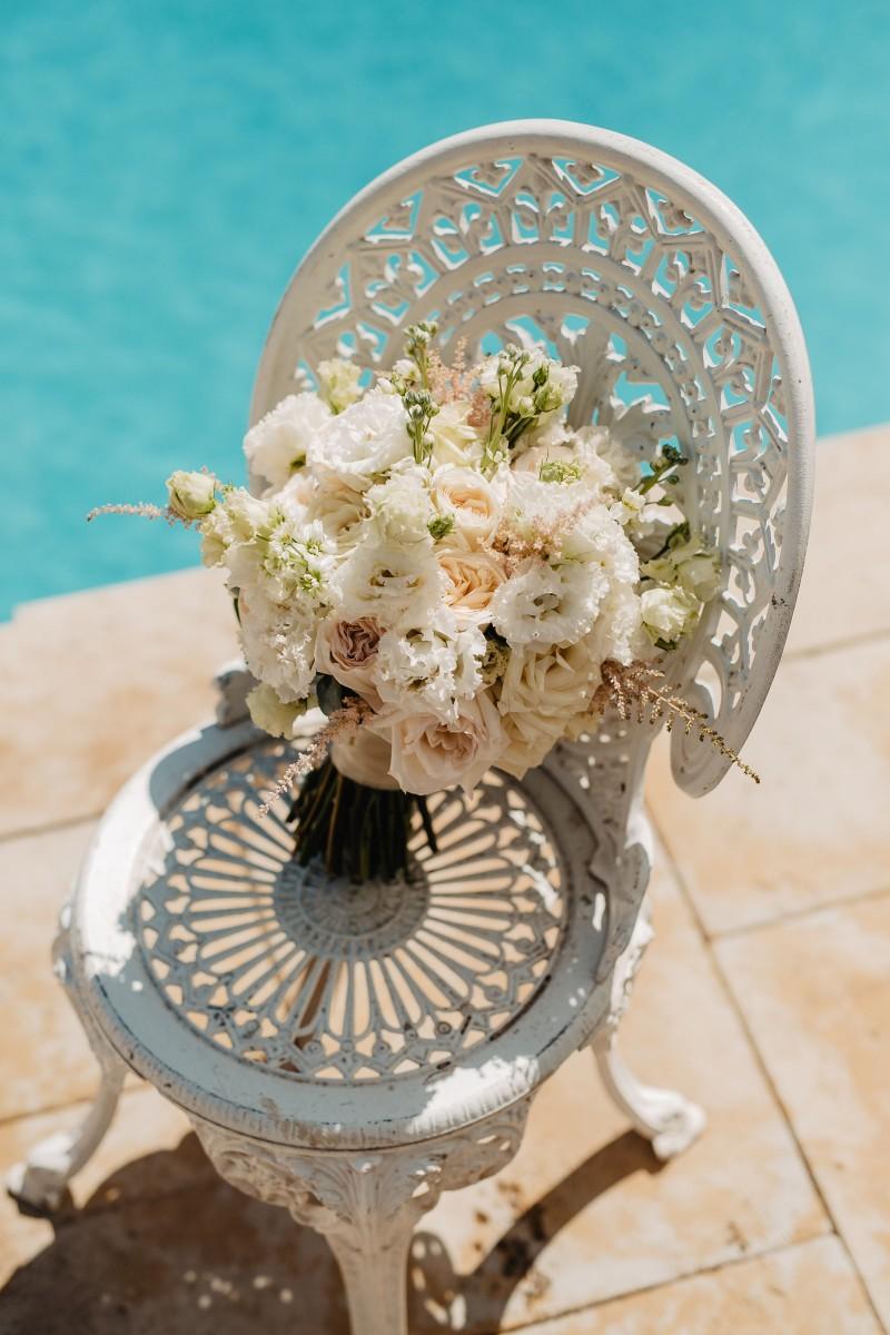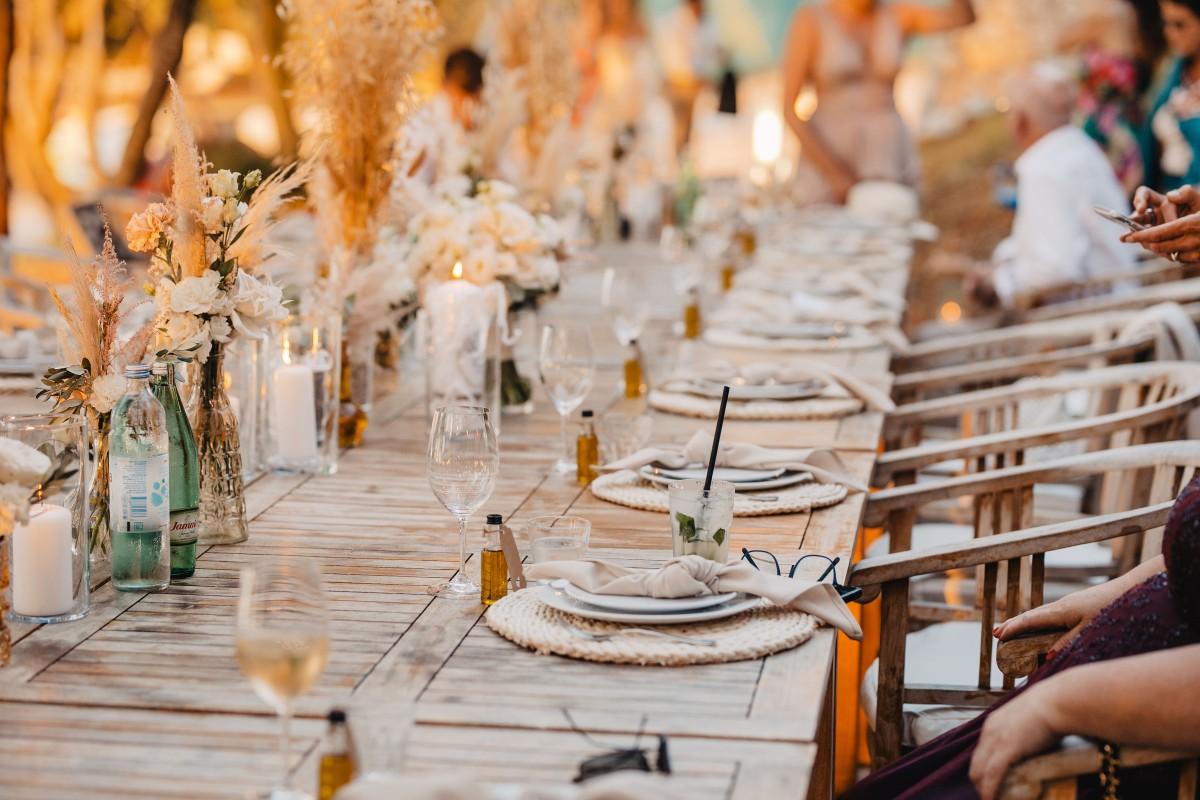 Jessica and Davor exchanged vows by the sea in an intimate ceremony surrounded by white boho-style decor. The setting blended coastal serenity with romantic textures and details, creating a soft and soulful ambiance. As the sun began to set, the evening came alive with the sounds of live saxophone and violin — a beautiful backdrop for their first moments as newlyweds.